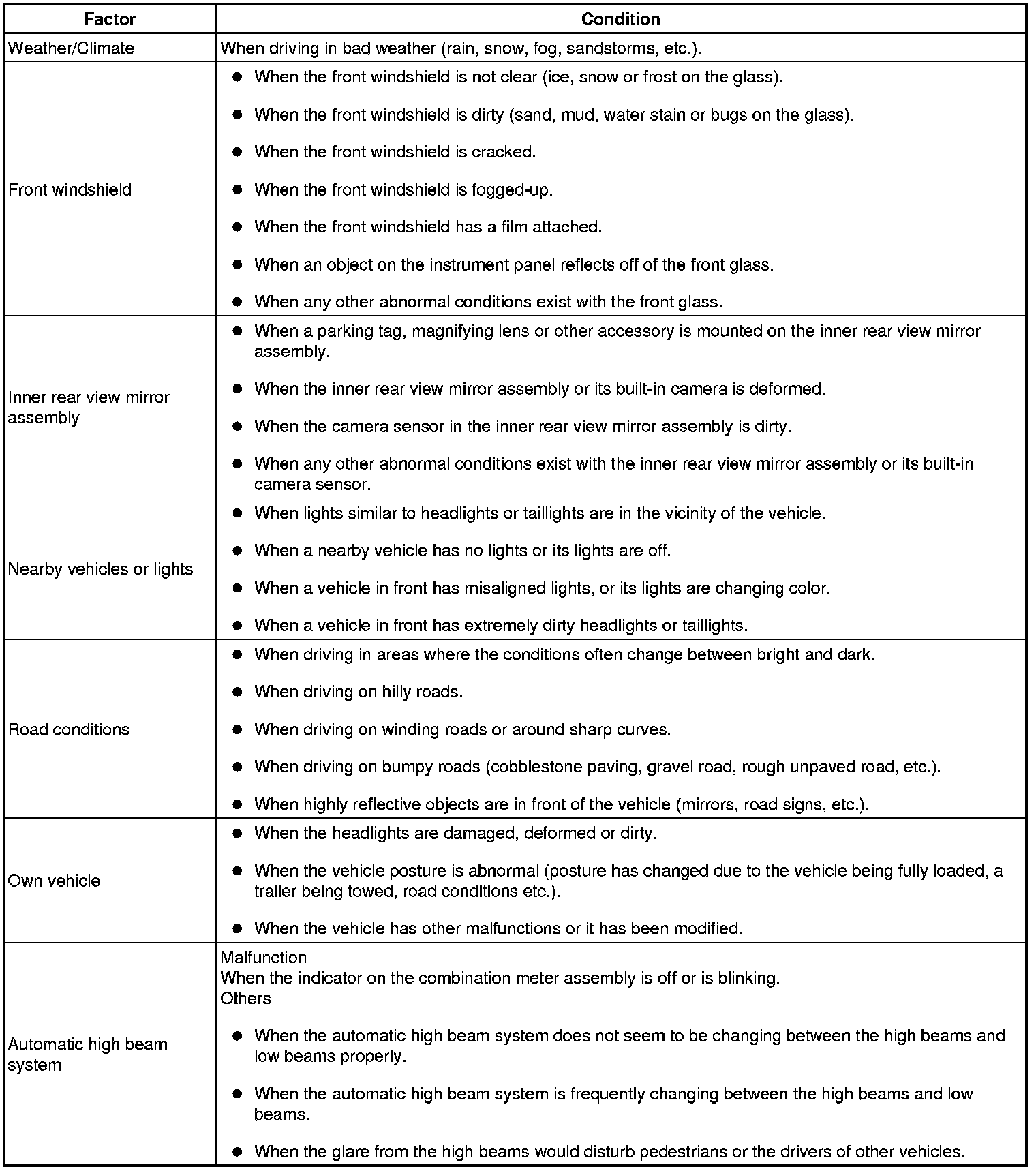 (b) Conditions Unsuitable for Using Automatic High Beam System