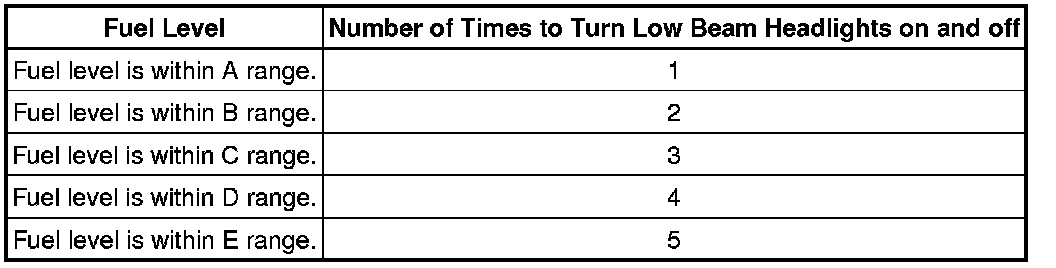 The number of times the low beam headlights need to be turned on and off is determined by the present fuel level as shown below.