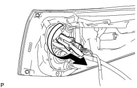 (a) Turn the tail light bulb and rear combination light socket and wire sub-assembly in the direction indicated by the arrow shown in the illustration, and remove them as a unit.