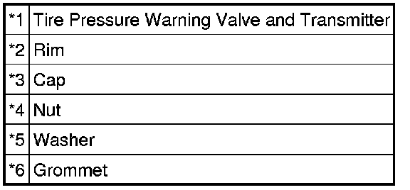 * Always use a new grommet, washer and nut when installing the tire pressure warning valve and transmitter.