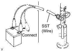 (1) Disconnect the tester probes of SST (wire) from the battery and check for fuel leaks from the injector.