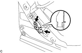 Loosen the bolt while holding the door side airbag sensor because the door side airbag sensor pin (stopper) is easily damaged.
