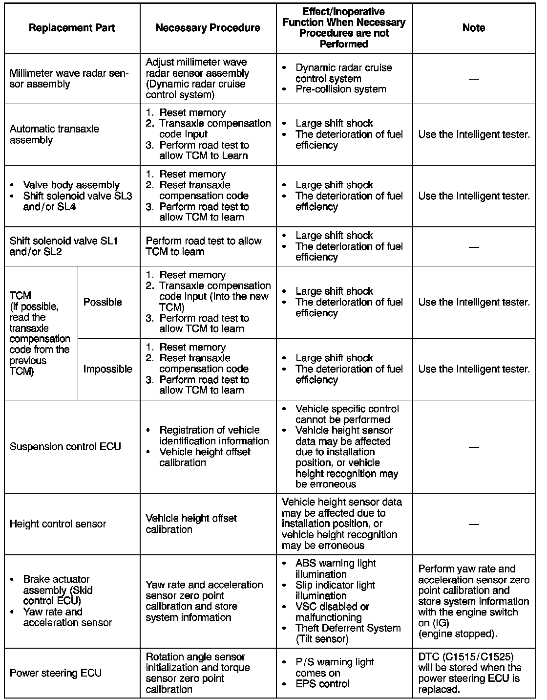 Procedures Necessary When ECU or Other Parts Are Replaced