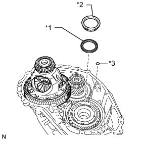 (c) Remove the thrust needle roller bearing and thrust needle roller race from the carrier lock nut.