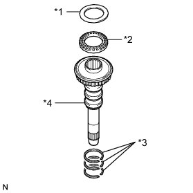 (b) Remove the thrust needle roller bearing and thrust needle roller race from the input shaft.