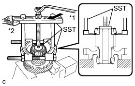 (c) Using SST, remove the bearing inner race (front side) from the counter drive gear.