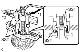 (a) Using SST and a press, remove the planetary gear assembly from the transaxle case.
