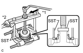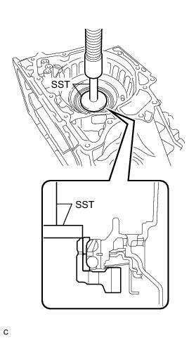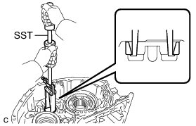 (a) Using SST, remove the counter driven gear rear tapered roller bearing outer race from the transaxle case.