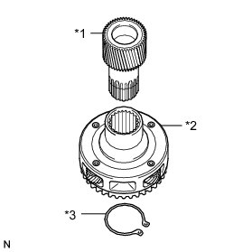 (b) Using a snap ring expander, install the planetary sun gear sub-assembly to the underdrive planetary gear assembly with the snap ring expanded.