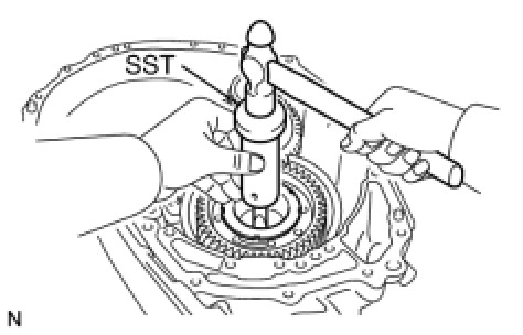 (e) Using SST and a hammer, stake the planetary gear assembly.
