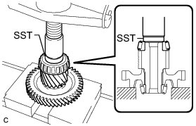 (a) Using SST and a press, install a new counter driven gear rear tapered roller bearing to the counter driven gear sub-assembly.