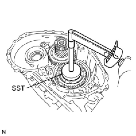 Be sure to install the counter driven gear front tapered roller bearing so that there is no clearance between the bearing and the counter driven gear. If there is any clearance, the turning torque of the counter drive gear cannot be measured correctly.