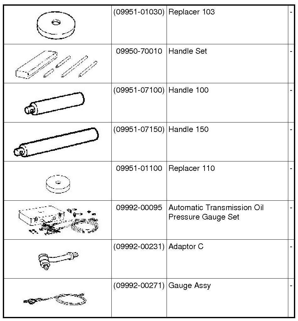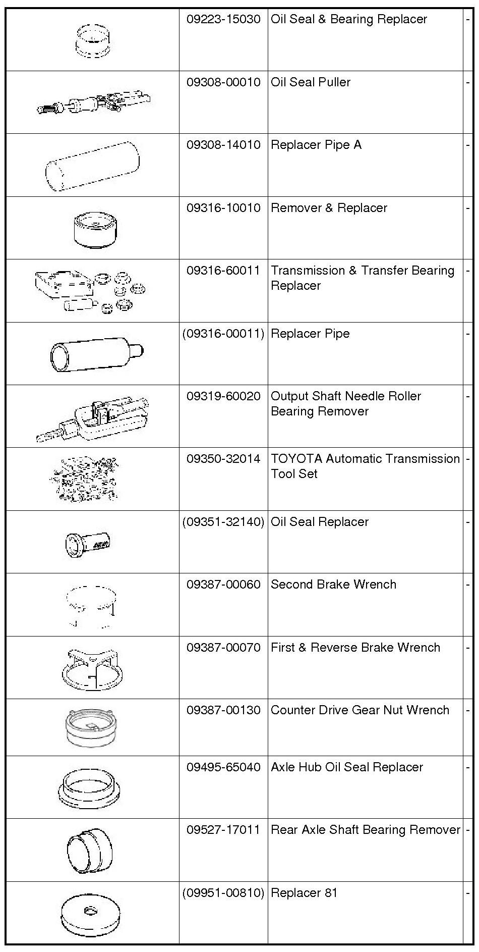 PREPARATION: U660E AUTOMATIC TRANSMISSION / TRANSAXLE: SST