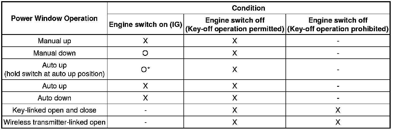(a) The power window control system prohibits the following power window operations when the pulse sensor for the jam protection function has problems and the window position or the learned value is abnormal.