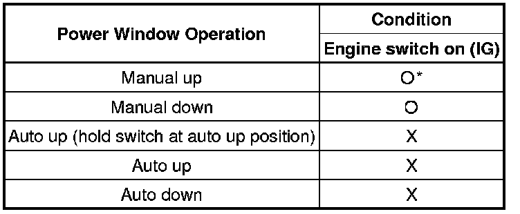 * *: Jam protection can operate and window reverses upon reaching the fully closed position.