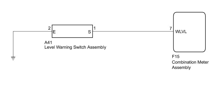 The combination meter receives washer fluid level warning switch condition (on or off) information to control the washer fluid level warning system.
