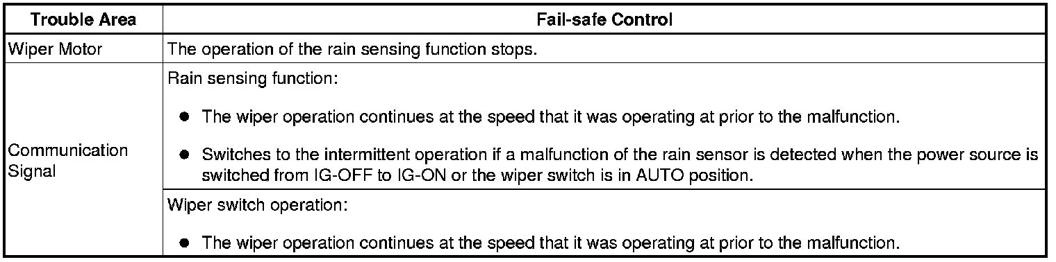 The following measures are taken as fail-safe when any malfunction is detected by the windshield wiper relay.