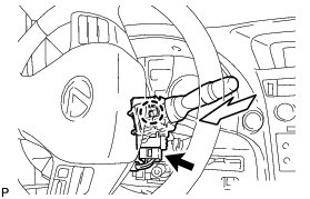 (e) Turn the steering wheel assembly to the left and install the screw as shown in the illustration.