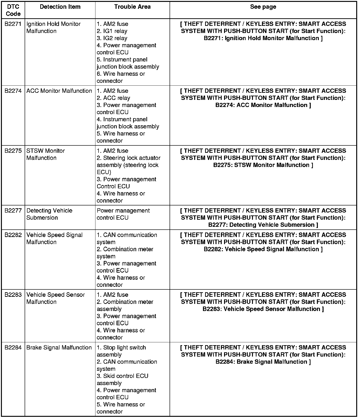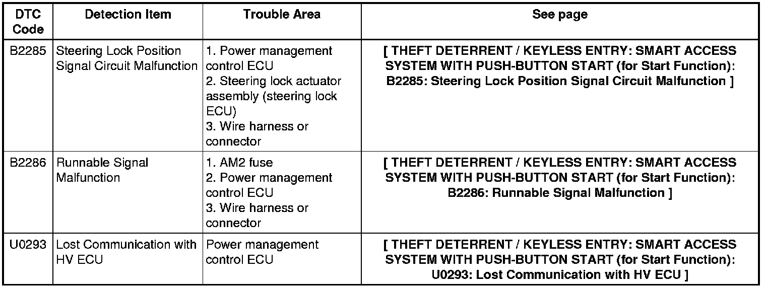 THEFT DETERRENT / KEYLESS ENTRY: SMART ACCESS SYSTEM WITH PUSH-BUTTON START (for Start Function): DIAGNOSTIC TROUBLE CODE CHART