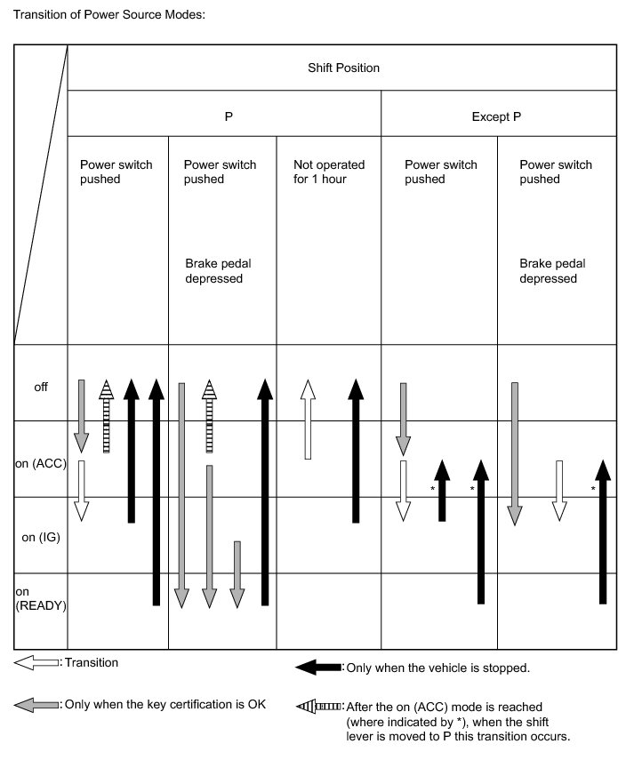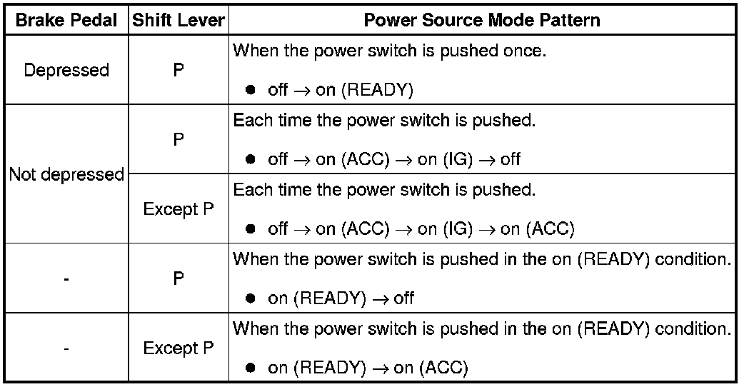 (a) This system has different power source mode patterns depending on the brake pedal condition and shift lever position.