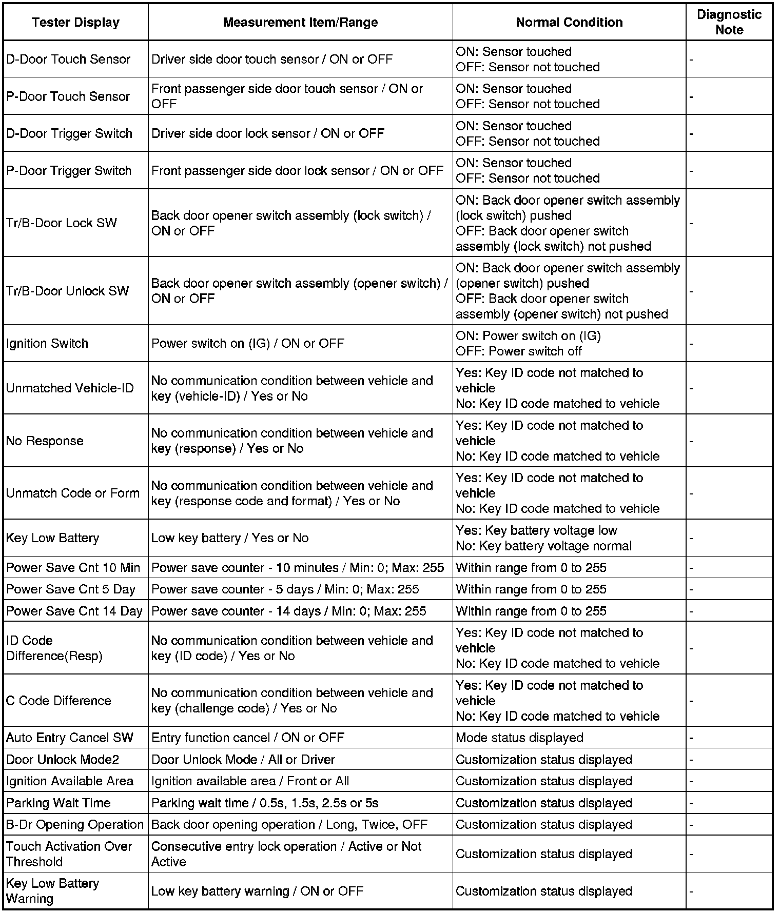 THEFT DETERRENT / KEYLESS ENTRY: SMART ACCESS SYSTEM WITH PUSH-BUTTON START (for Entry Function): DATA LIST / ACTIVE TEST