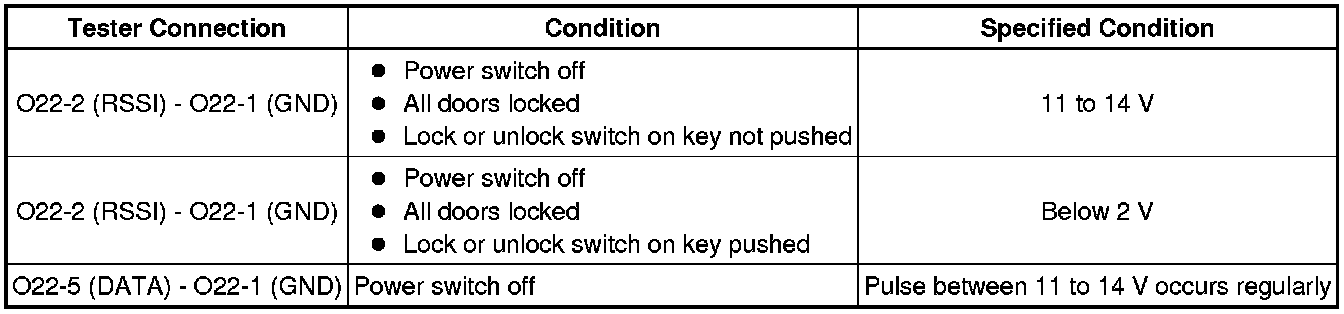 When measuring the battery voltage, while operating the lock switch of a door outside handle assembly, bring the key within the entry operating range to perform the measurement. For the entry operating range, refer to System Description Smart Access System With Push-Button Start (for Entry Function).