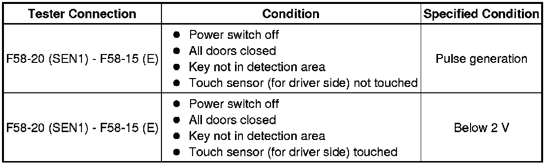 (c) Measure the voltage and check for pulses according to the value(s) in the table below.