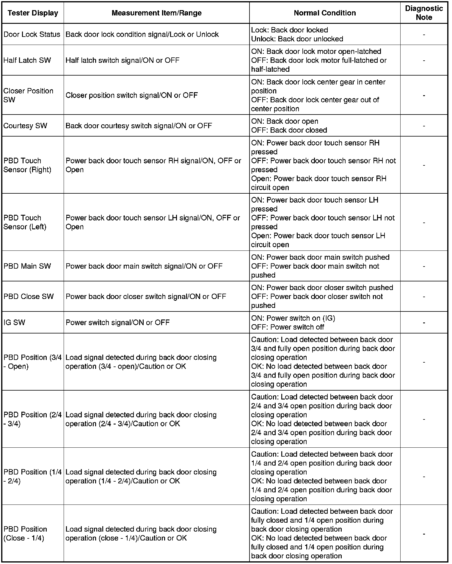 DOOR / HATCH: POWER BACK DOOR SYSTEM: DATA LIST / ACTIVE TEST