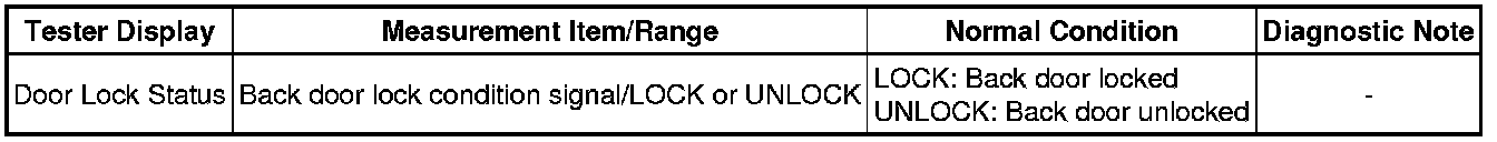 (e) Check the Data List to determine if the back door lock assembly functions properly.