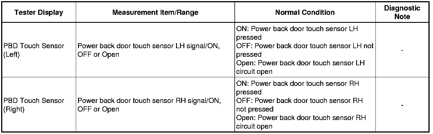 9. READ VALUE USING TECHSTREAM (POWER BACK DOOR TOUCH SENSOR)