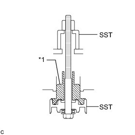 (b) Using SST, install the front suspension member body mounting front cushion as shown in the illustration.