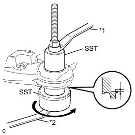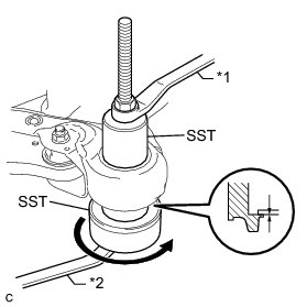(c) Using SST, install the front suspension member body mounting rear cushion LH as shown in the illustration.