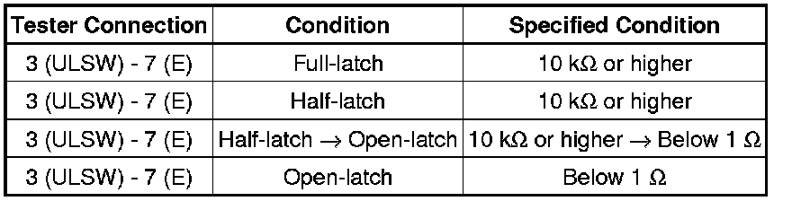 If the result is not as specified, replace the back door lock assembly.