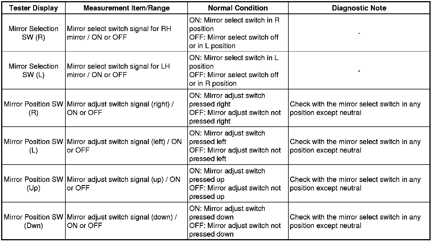 - Power Mirror cannot be Adjusted with Power Mirror Switch