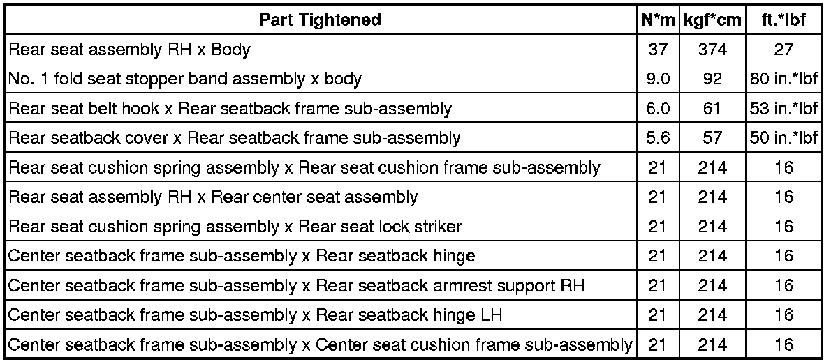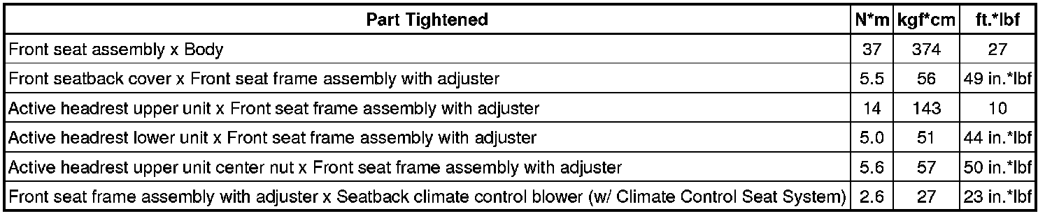 SPECIFICATIONS: SEAT: TORQUE SPECIFICATIONS