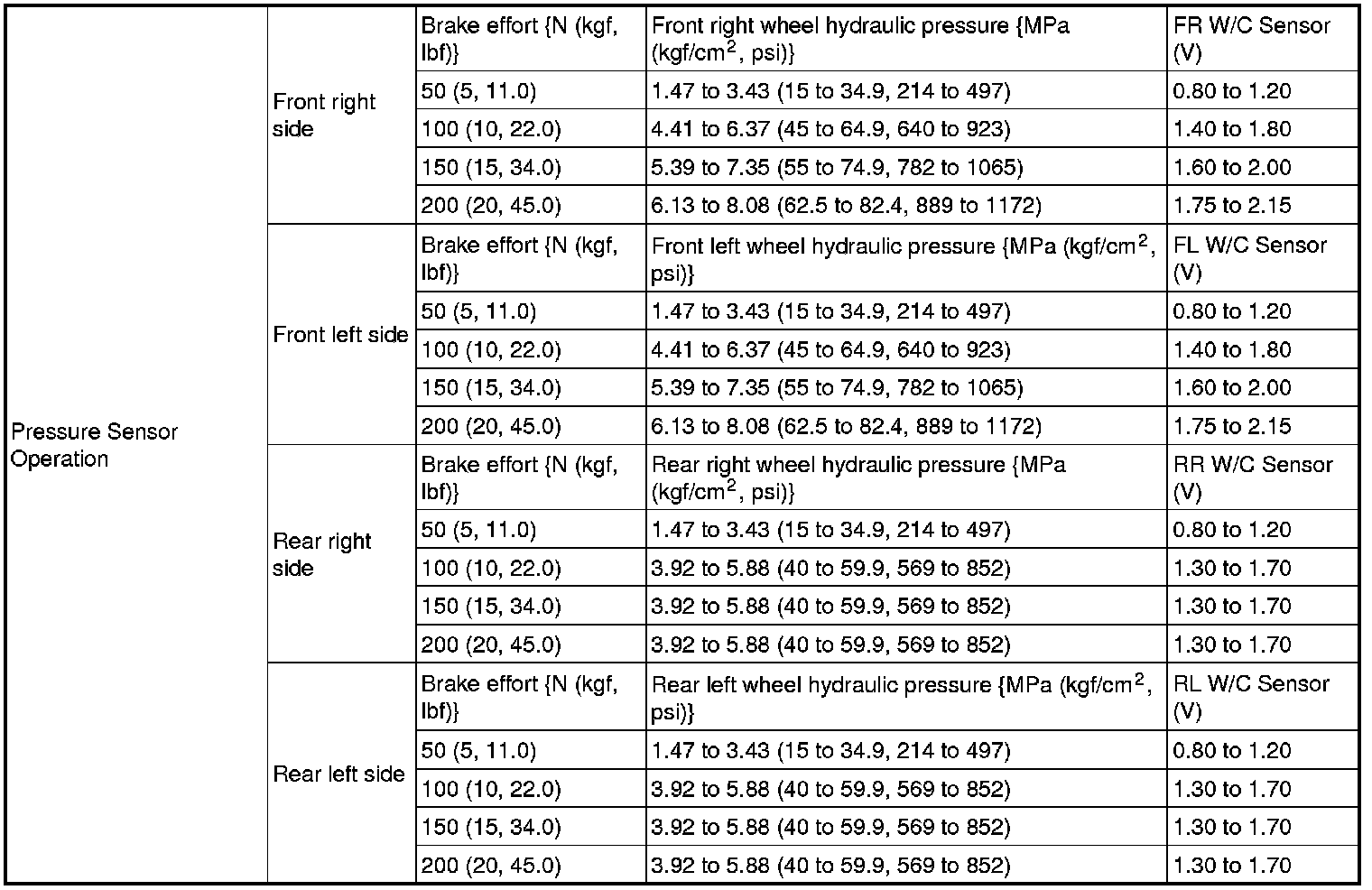 SPECIFICATIONS: BRAKE CONTROL / DYNAMIC CONTROL SYSTEMS: SERVICE DATA