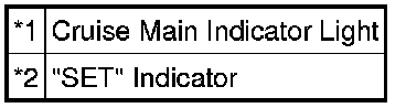 When tapping down the cruise control main switch to - SET (for approximately 0.6 seconds) while the cruise control system is in operation, the stored vehicle speed decreases each time by approximately 1.6 km/h (1 mph). When the cruise control main switch is released from - SET and the difference between the driving and stored vehicle speeds is more than 5 km/h (3 mph), the driving vehicle speed is stored and constant speed control is maintained.
