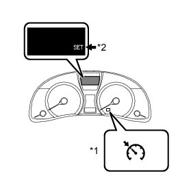 The power management control ECU displays "SET" on the multi-information display when constant speed control is started by pushing the cruise control main switch to "- SET".