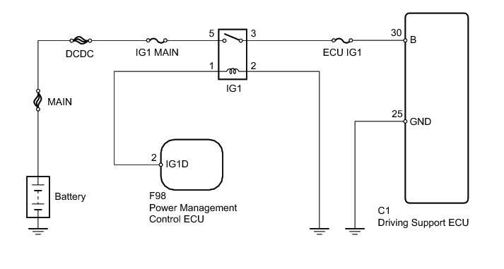 NG -- REPAIR OR REPLACE HARNESS OR CONNECTOR (DRIVING SUPPORT ECU - IG1 RELAY)