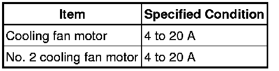 (b) Clamp the 400 A probe of an ammeter over the M+ wire of each cooling fan motor.
