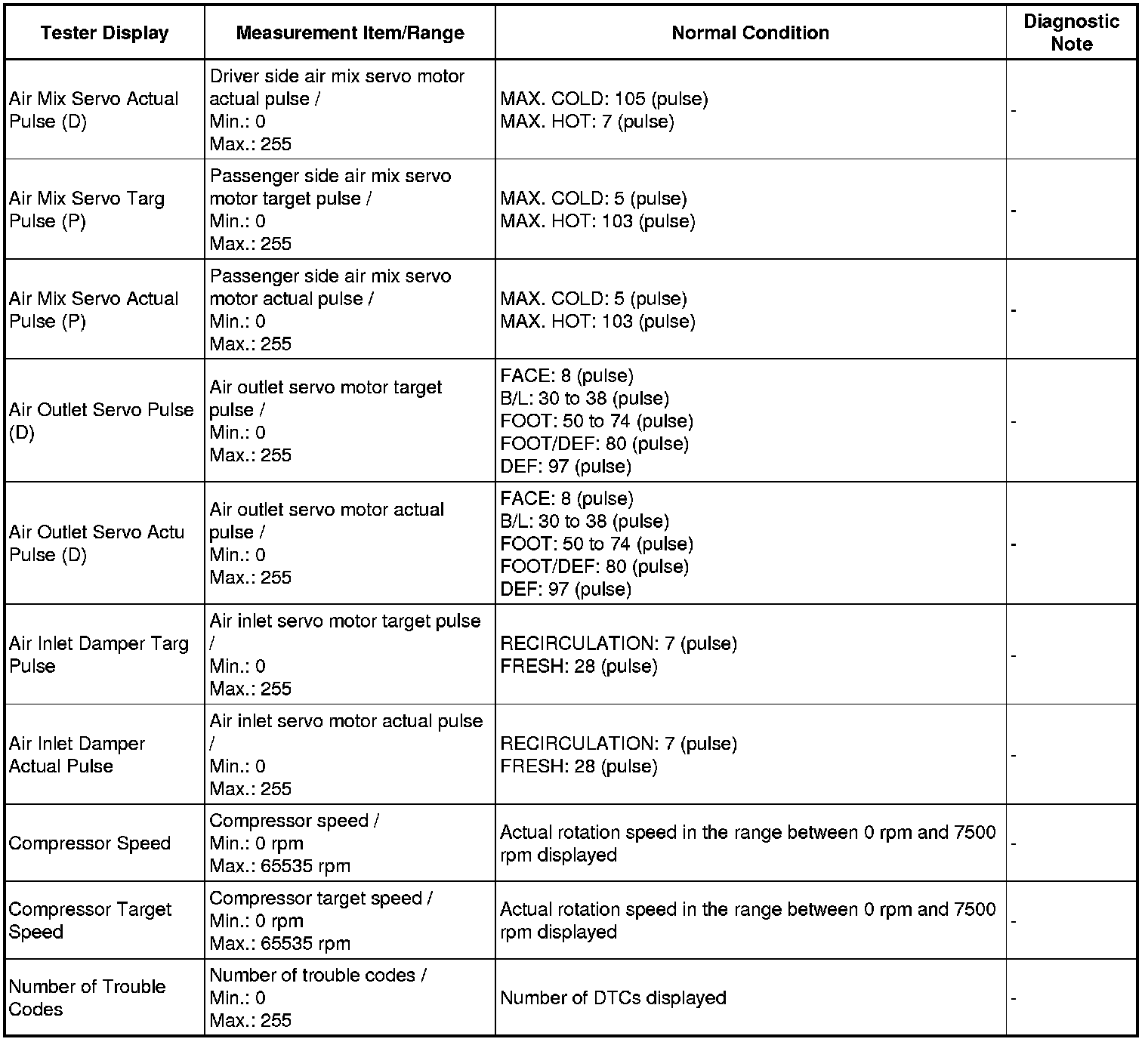 HEATING / AIR CONDITIONING: AIR CONDITIONING SYSTEM: DATA LIST / ACTIVE TEST