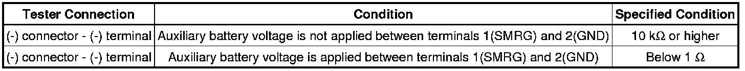 If the result is not as specified, replace the hybrid battery junction block assembly.