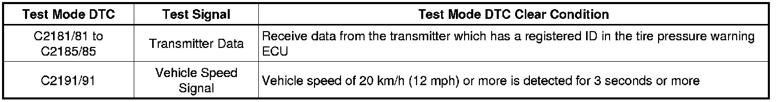 * When entering signal check mode, the tire pressure warning ECU sets all the test mode DTCs first.