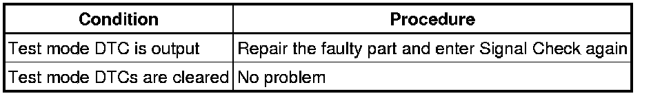 * When signal check returns to normal mode, all the test mode DTCs will be erased.