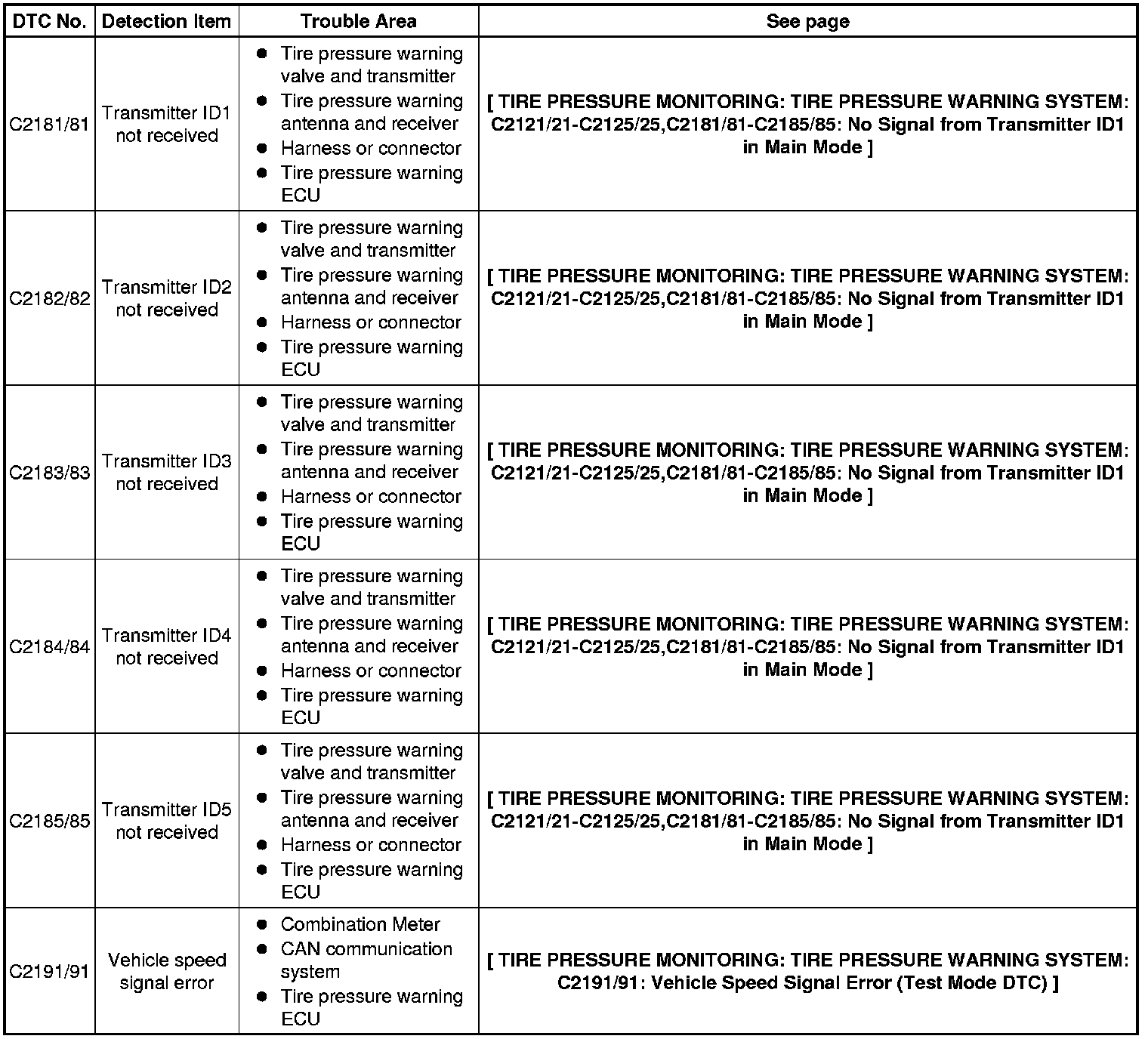 (1) If a trouble code is displayed during the test mode DTC check, check the circuit listed for that code. For details of each code, refer to the "See page" below.