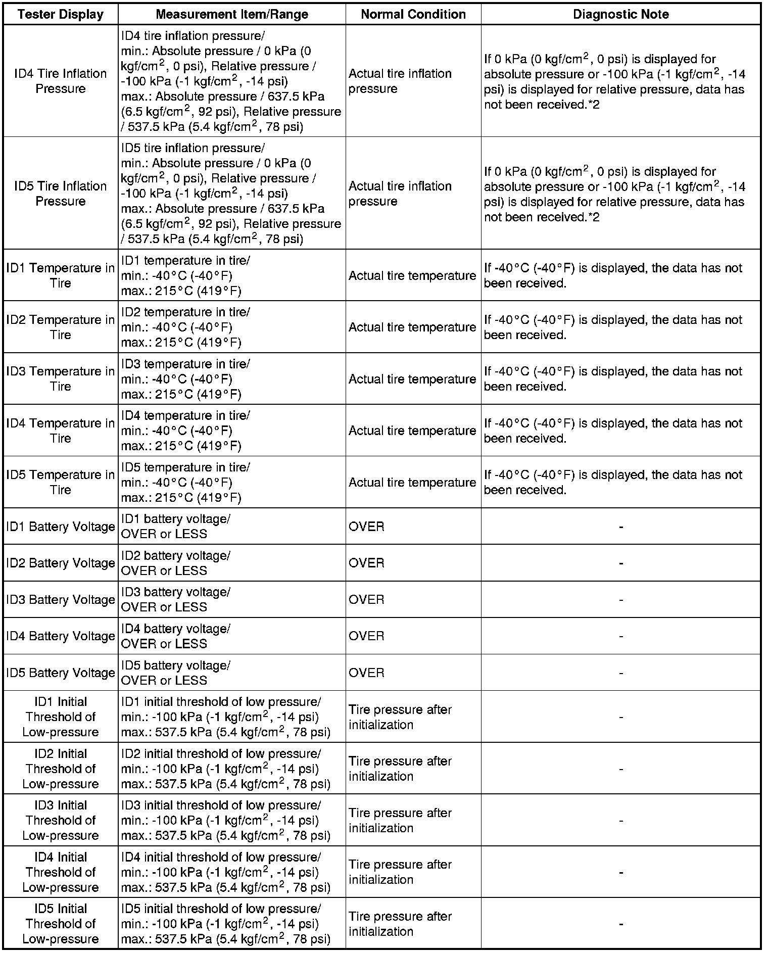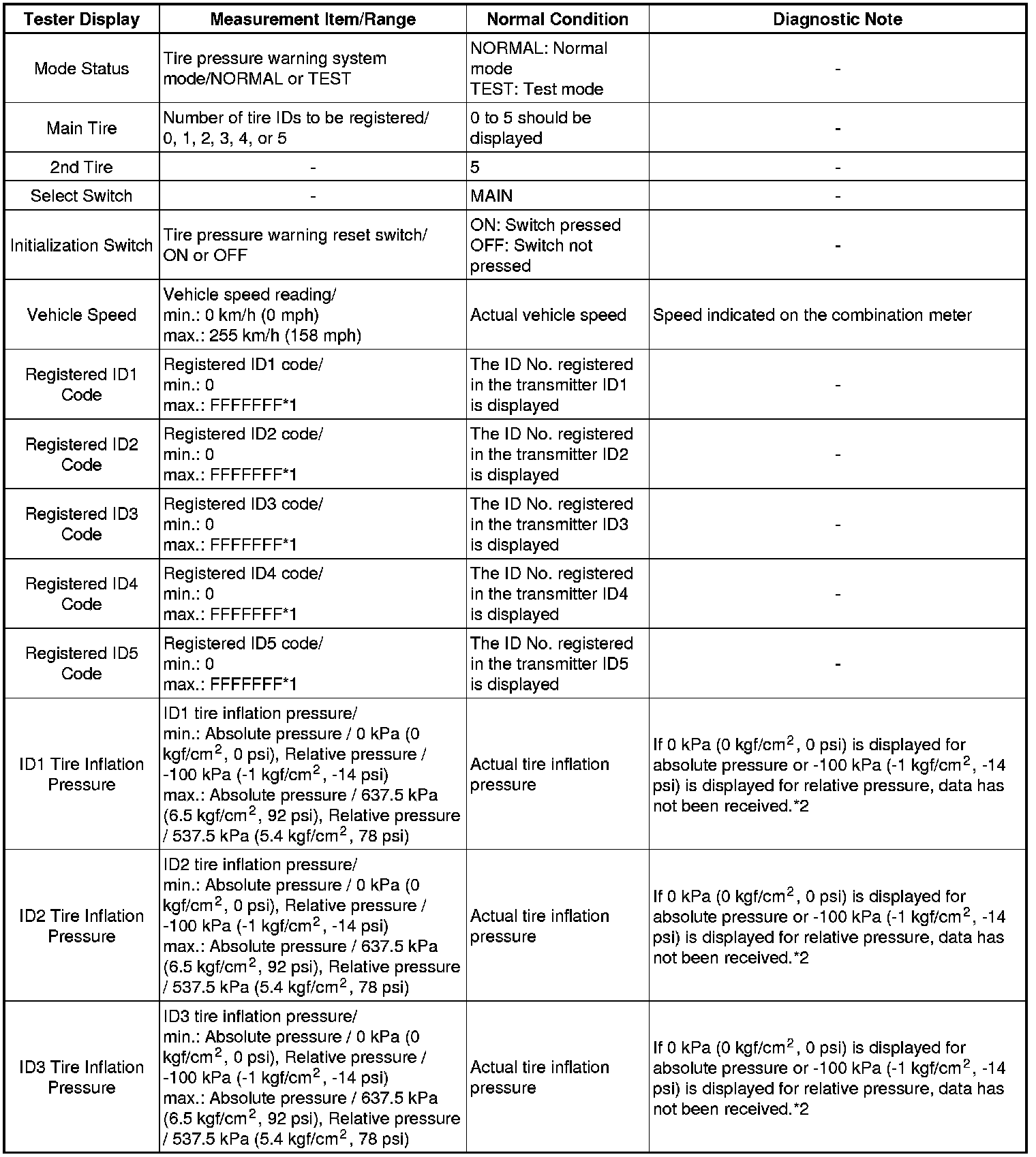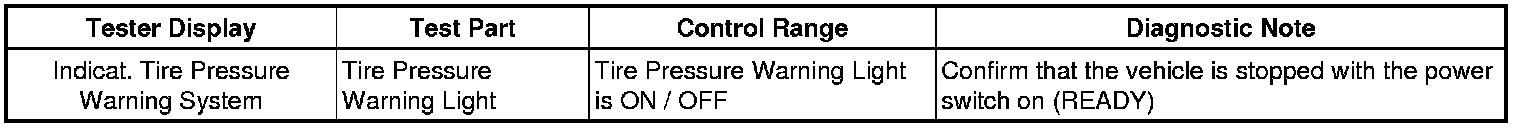 TIRE PRESSURE MONITORING: TIRE PRESSURE WARNING SYSTEM: DATA LIST / ACTIVE TEST