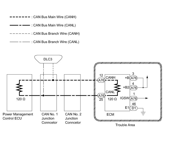 1. CHECK CAN BUS WIRE FOR DISCONNECTION (ECM MAIN WIRE)
