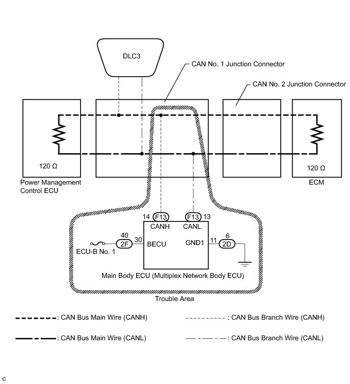 1. CHECK CAN BUS WIRE FOR DISCONNECTION (MAIN BODY ECU BRANCH WIRE)