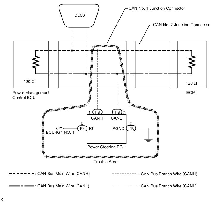 1. CHECK CAN BUS WIRE FOR DISCONNECTION (POWER STEERING ECU BRANCH WIRE)