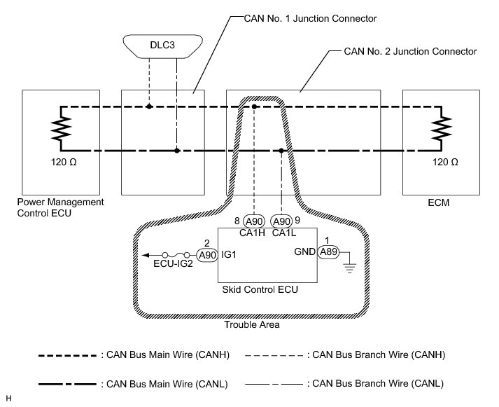 1. CHECK CAN BUS WIRE FOR DISCONNECTION (SKID CONTROL ECU BRANCH WIRE)